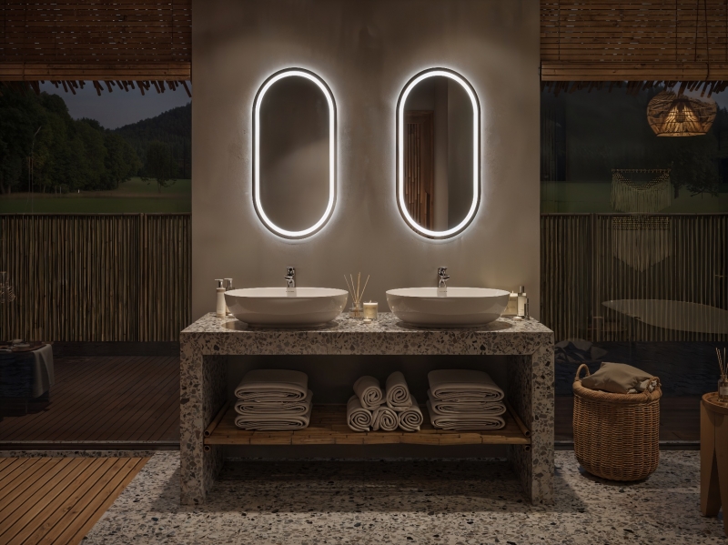 Espejo a medida con arenado interno de 20mm y luz frontal y ambiental