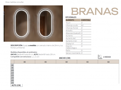 Espejo a medida con arenado interno de 20mm y luz frontal y ambiental