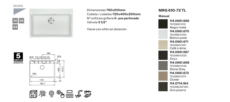 114.0658.305 114.0658.308 114.0658.303 114.0658.306 114.0658.309 FRANKE FREGADERO MODELO MARIS MRG 610 – 72 TL FRAGRANITE NUEVO