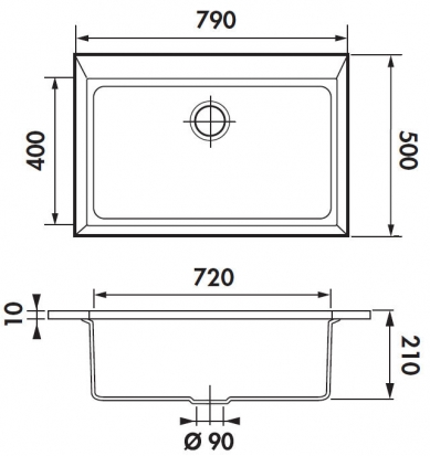 Fregadero compuesto por 1 gran Cubeta. Dimensiones ideales para lavar las bandejas de los hornos y los platos voluminosos.