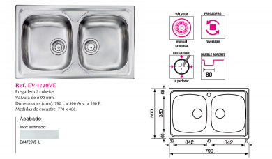 Fregadero de acero inoxidable Luisina Jazzy EV4720VE
