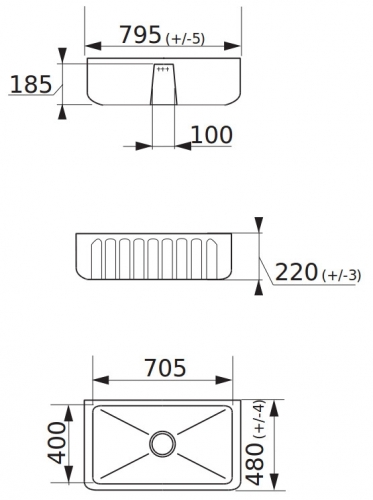 Fregadero porcelana Chambord Louis II E3800 - 795 x 480 mm