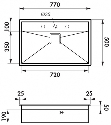 Dimensiones (mm): 770 Largo x 500 Ancho x 190 Profundo