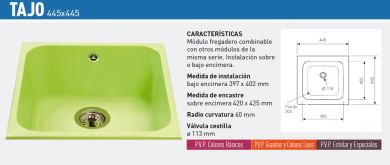 Se fabrica en una gama de colores, ademas se pueden hacer en cualquier otro color de la Carta Ral y Silestone.(Consultenos)