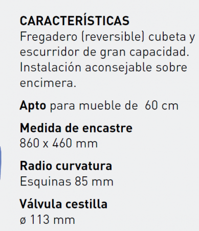 FREGADERO SINTÉTICO DE ENCIMERA ALARCOS 100 X 50 CM URDAPLAST.