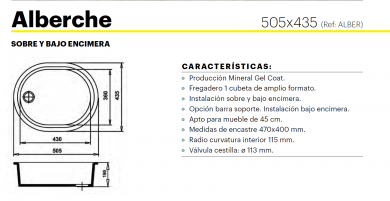 FREGADERO SINTÉTICO DE ENCIMERA O BAJO ENCIMERA ALBERCHE 50,5 X 43,5 CM URDAPLAST.