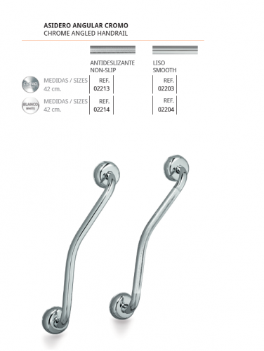 Asidero, agarrador, ergonómico para baño o ducha, acabado curvo, en acero cromado , o en blanco