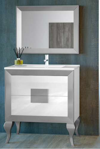 Mueble de baño con encimera cerámica , fabricado por CampoAras, fabrica española situada en Córdoba, con gran prestigio en el sector.