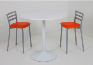 Mesa de cocina , con encimera de melamina en varios colores a elegir y pié central de aluminio. Modelo 26.