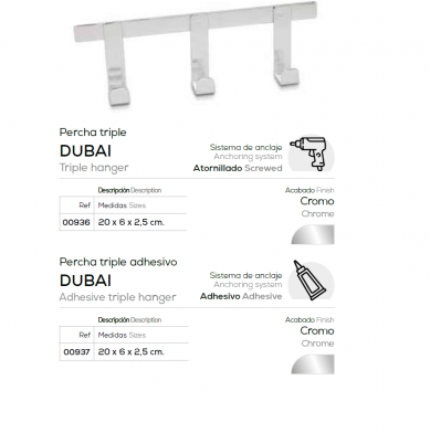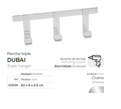 Percha triple modelo Dubai, fabricado por Metalúrgicas Beltran.