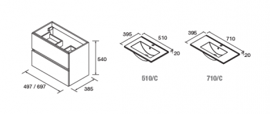 Conjunto de mueble mas lavabo para baños actuales, fabricado por Salgar con terminaciones y calidades de alta gama.