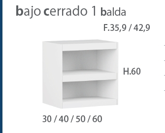 Se diseña en medidas de 60,70,80,90,100cm de ancho y con fonodo de 45cm o de 37,8cm ( fondo reducido)