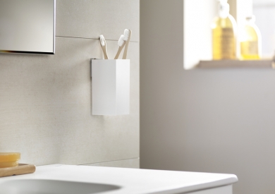 Portavaso y vaso de pared (Posibilidad de instalación mediante tornillería o adhesivo)