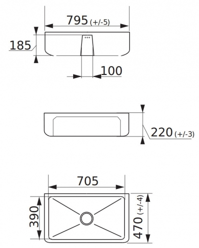 Dimensiones (mm): 795 Largo x 470 Ancho x 220 Profundo