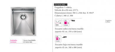 Modelo: Fregadero de acero inoxidable RADIO 10