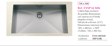 FREGADERO DE ACERO INOXIDABLE BAJO ENCIMERA LUISINA MONTEVERDI EVSP32MIL 720X400