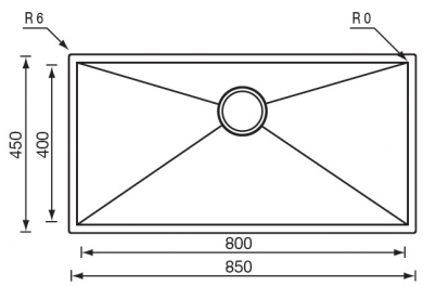 Fregadero compuesto por 1 gran cubeta rectangular con ranuras en el fondo (ángulos rectos) Válvula de 90mm de diámetro