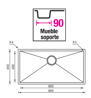 Cubeta: 800 Largo x 400 Ancho