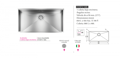 Modelo: Fregadero bajo encimera de acero inoxidable Monteverdi (Acero/Luisinox)