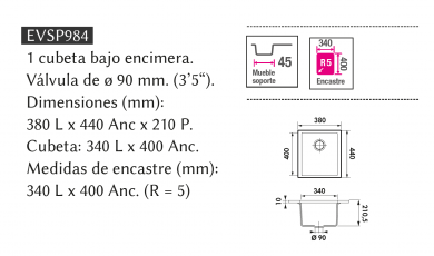 Dimensiones (mm): 380 Largo x 440 Ancho x 21.5 Profundo