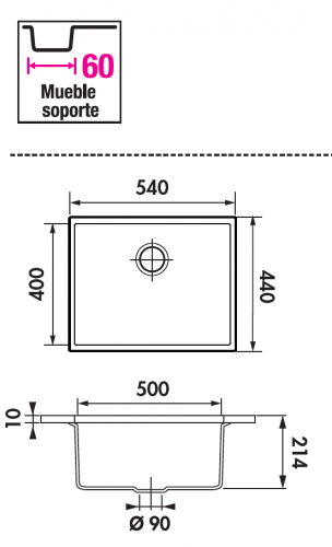 Dimensiones (mm): 540 Largo x 440 Ancho x 214 Profundo