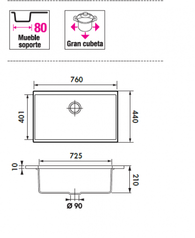 Dimensiones (mm): 760 Largo x 440 Ancho x 210 Profundo