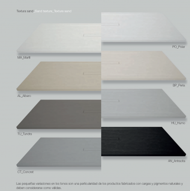 Se fabrican en 8 colores : Blanco Polar,Marfil,Albero, Perla, Tundra, Humo,Concret, Antracita.