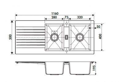 FREGADERO DOS CUBETA, Y ESCURRIDOR,