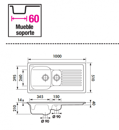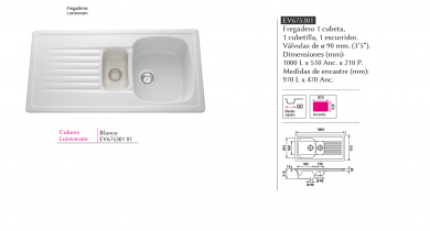 Fregadero compuesto por 1 cubeta + 1 escurridor + 1 salsero