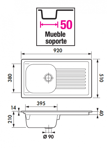 Medidas de encastre: Utilizar la plantilla entregada con el fregadero