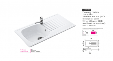 Fregadero compuesto por 1 cubeta + 1 escurridor