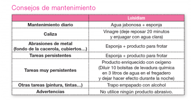 Mantenimiento diario: producto de limpieza usual no abrasivo.