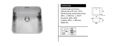 FREGADERO BASIC - BAJO ENCIMERA EVSP39 MIL LUISINA