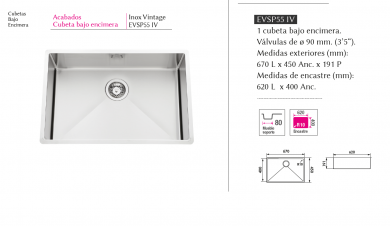 Modelo: Fregadero bajo encimera acero inox Vibrato (Acero/Luisinox)