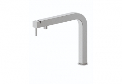 Grifo de cocina de diseño contemporáneo con líneas rectas y acabados en acero inoxidable.