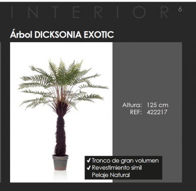 Árbol DICKSONIA EXOTIC artificial de 125 cm de altura. Tiene un gran tronco con revestimiento símil
