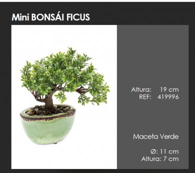 Mini Bonsái FICUS artificial, preciosa réplica de alto realismo, con 19 cm de altura, de colores