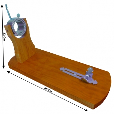 Soporte jamonero giratorio con la base lacada en color claro y redonda en ambos extremos, en el soporte se introduce el casquillo giratorio, ademas incluye "V" corredera que se puede fijar en varias posiciones, según el tamaño del jamón.