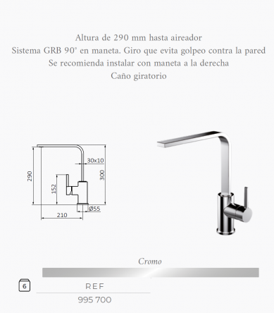 Altura maneta 152 mm