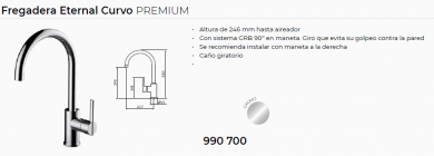 GRB Eternal caño Curvo grifo fregadero monomando vertical cromo