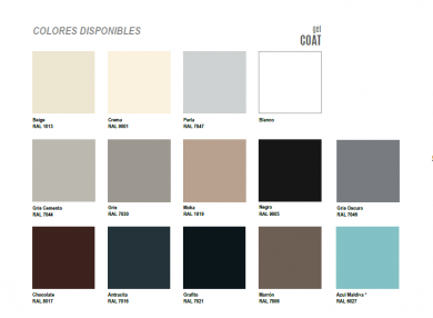 Disponible en todos los colores de la carta, si desea otro color de la carta Ral, consultenos precio.