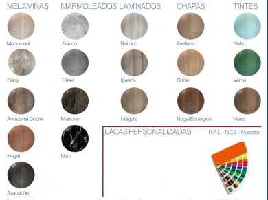 También se puede adquirir mueble con tapa de DM, o tapa de solid , para instalar lavabo de posar.