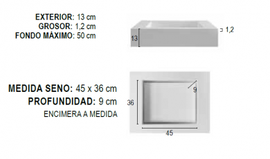 La cubeta tiene una medida de 45x36x9 cm, se puede hacer centrada, o desplazada, o con doble cubeta, la medida de la cubeta no se puede variar.