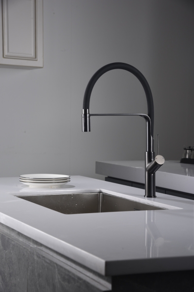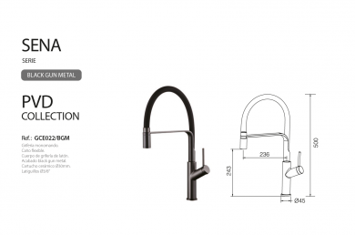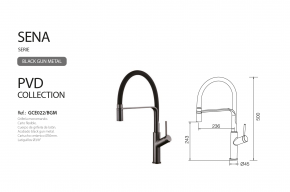 Grifería de cocina monomando flexible Black Gun Metal serie Sena