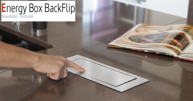 Nuevo Energy Box BackFlip con 2 enchufes y 1 USB cargador en terminación inox. Ideal para encastrar en prácticamente todas las encimeras, puesto que sólo tiene 53 mm de profundidad. Sólo presionando en un punto del BackFlip cuando está cerrado, aparece el energy box listo para ser usado.