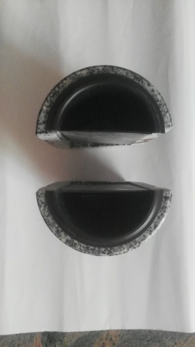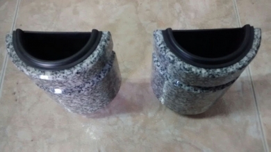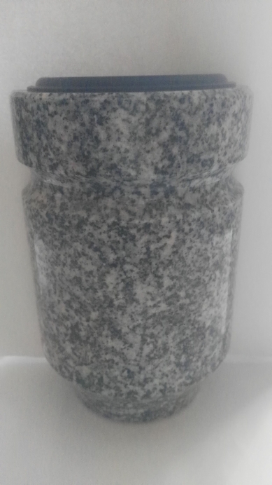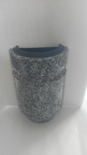 Búcaro mediocon forma redondeada de granito para acoplar a lapida; El granito es un material muy resistente y duradero, cualidad que lo hace ideal para estos productos que se sitúan a la intemperie.