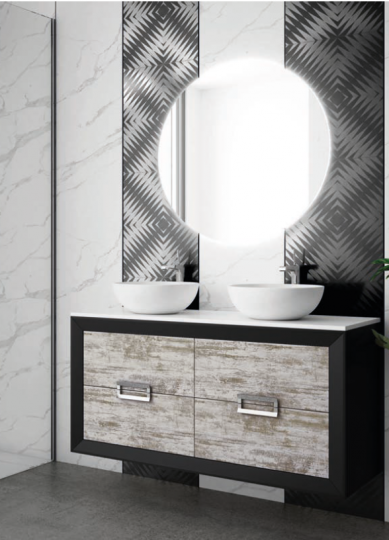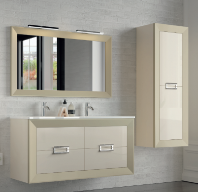 Mueble de baño con encimera cerámica , fabricado por CampoAras, fabrica española situada en Córdoba, con gran prestigio en el sector.