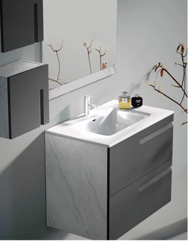 Mueble de baño con encimera cerámica , fabricado por CampoAras, fabrica española situada en Córdoba, con gran prestigio en el sector.