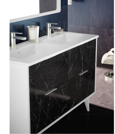 Mueble de baño con encimera cerámica , fabricado por CampoAras, fabrica española situada en Córdoba, con gran prestigio en el sector.