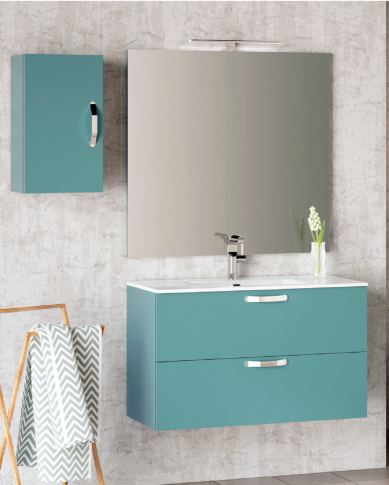 Mueble de baño con encimera cerámica , fabricado por CampoAras, fabrica española situada en Córdoba, con gran prestigio en el sector.